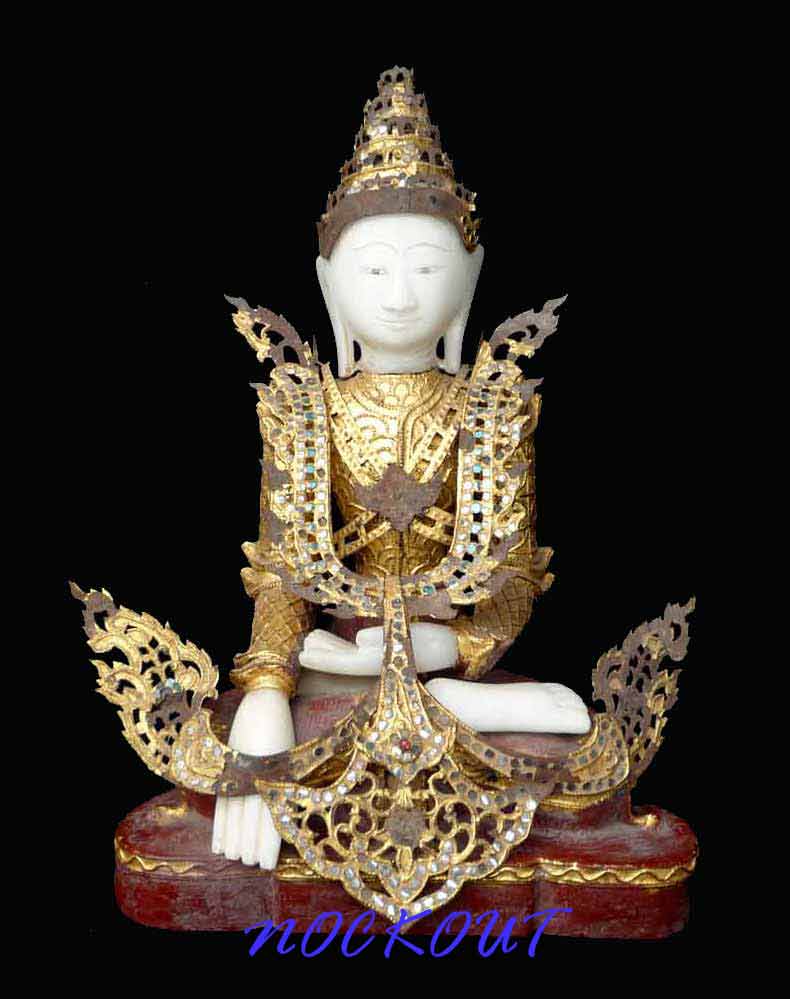 "พระพุทธรูปมัณฑะเลย์ พม่าเรียก"ลูกแก้ว" ลำตัวทำจากไม้สักลงรักปิดทอง เครื่องทรงเนื้อโลหะสำริด ส่วน มือ,เท้า,ศรีษะ เป็นหินอ่อน (ถอดได้ทั้งหมดครับ) ยุคมัณฑะเลย์ (รัตนะไทย) 200กว่าปี องค์ที่โชว์อายุไม่ต่ำกว่า 80ปีครับ หน้าตัก 10นิ้ว... |