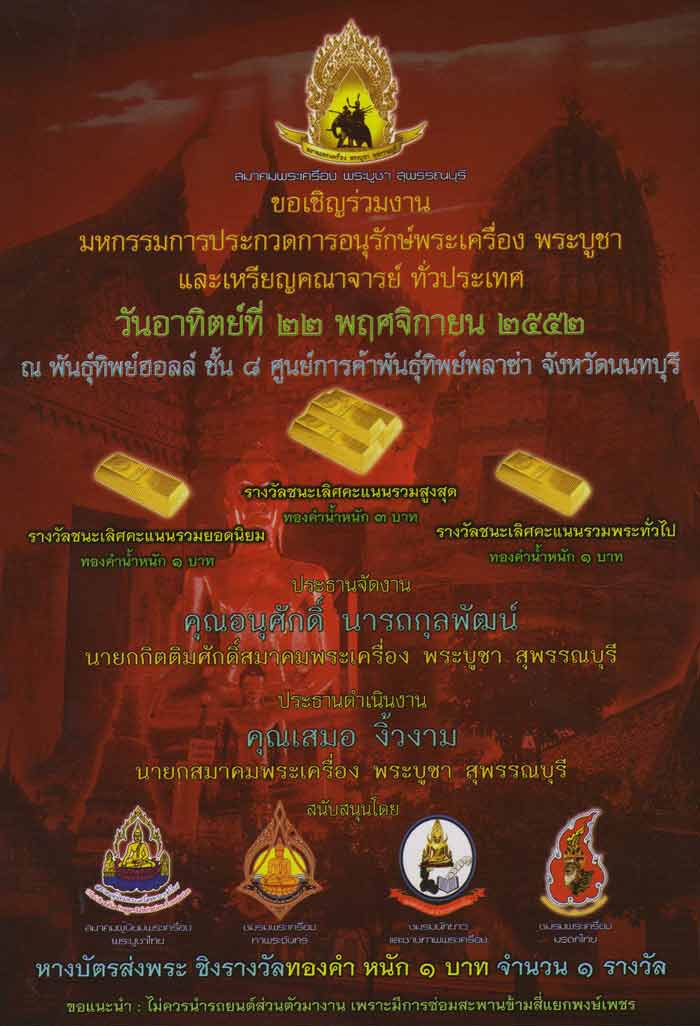 อาทิตย์ที่ 22 พ.ย. งานประกวดของสมาคมพระเครื่องสุพรรณบุรี