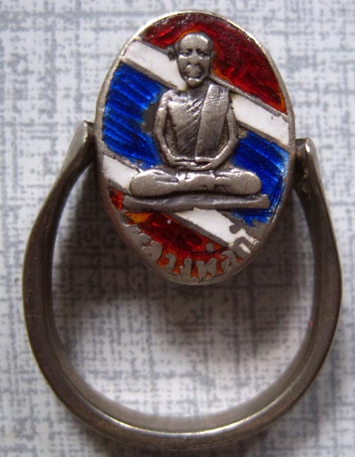 ...วงแรก พิมพ์นั่งเต็มองค์ เนื้อเงิน ลงยาราชาวดี (ยาแก้ว) ยาแบบนี้จะเป็นยาใสครับ ส่วนมากพบในหัวแหวนเนื้อเงินซึ่งแหวนลักษณะนี้จะวงเล็กนะครับ สร้างให้ผู้หญิงใช้ พิมพ์นั่งเต็มองค์แบบยาทึบก็มี หัวแหวนจะใหญ่กว่าพอสมควร สร้างสำหรับผู้ชาย....แบบนี้นิยมที่สุดครับ หายากสุดๆ วงนี้สมบูรณ์มากๆแล้ว