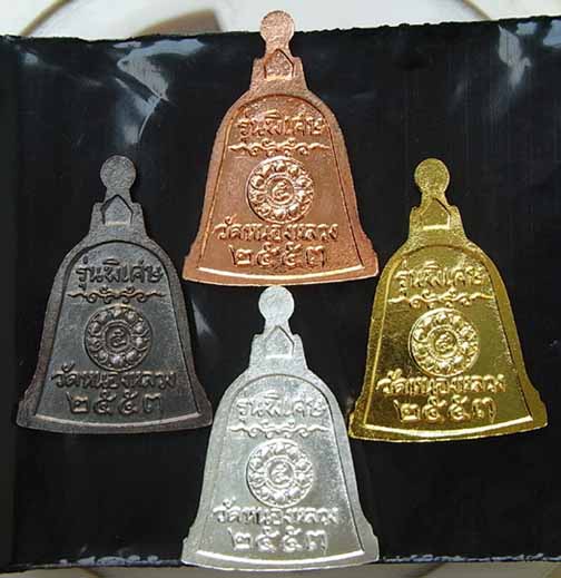 ครบชุดแจกทาน หลวงพ่อลออ เสาร์๕ เหรียญระฆังเสาร์๕เนื้อกะไหล่ทอง,เงิน,นาค,ทองแดงรมดำ รูปถ่ายและสตางค์ ตอกโค้ตทุกชิ้น เนื่องจากมีการแจกเนื้อทองคำ,เนื้อเงิน,เนื้อเงินหน้าทองคำ จึงต้องใช้ถุงดำเพื่อไม่ให้เห็นว่าเป็นเนื้ออะไร ขอบอกว่าสุดคุ้มสำหรับท่านที่ได้ไปรับแจก |