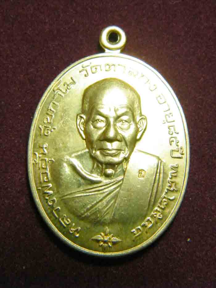 เหรียญโภคทรัพย์ เนื้อฝาบาตร ของหลวงพ่ออุ้น เหรียญนี้ คุณทัส / textile007 ได้เมตตา แบ่งให้ใช้เมื่อต้นปีที่แล้ว ในราคา เหมือนให้เปล่า ... ผมใส่ตลับแสตนเลสอยู่ ... ตอนนี้พอมีกะตังค์บ้างแล้ว จึงเคาะประมูล กรอบทองยกซุ้มของคุณวุฒิชัยไว้ ถ้า ไม่มีคนแย่งปิดประมูลไป พรุ่งนี้บ่ายแก่ๆ ผมก็คงมีกรอบทอง เป็นจีวรให้หลวงพ่อ ละครับ  |
