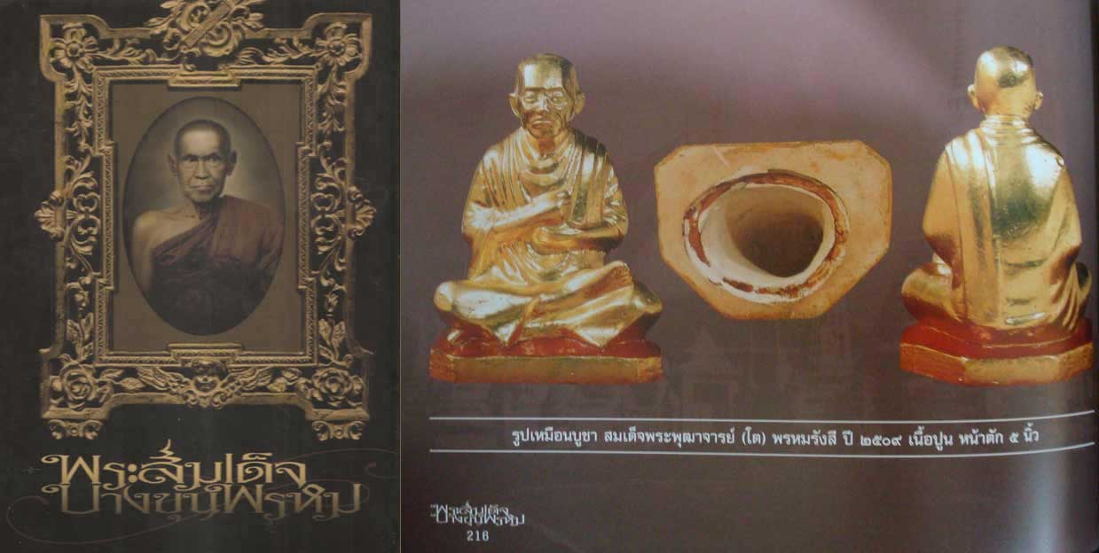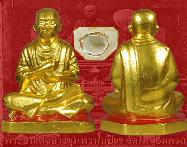 เป็นพระบูชาที่ได้จัดสร้างพร้อมพระเครื่องปี๐๙ โดยการแกะพิมพ์จากลุงแฉล้มบัว เปลี่ยนสีครับ องค์นี้ลงรักปิดทองใหม่ครับ ชิ้นพระที่บรรจุโดนเปิดออกแล้วครับ แต่ดูง่ายมากๆครับ เป็นพระบูชาที่ลงเป็นองค์ครูอยู่ในหนังสือพระสมเด็จพระสมเด็จแจกงานสามพรานครับ ไม่อยากจะเชื่อว่าได้มา เพราะหายากมากๆครับ เลยนำมาให้ชมกันครับผม