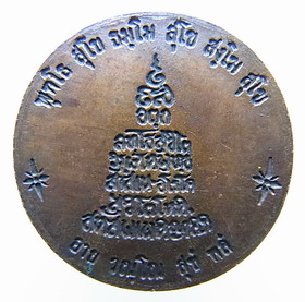 เหรียญพระแก้วมรกตรุ่นแรก รุ่นหมดห่วง สร้างโดยคุณสุธันย์ สุนทรเสวี พ.ศ.2522-2523 เนื้อทองแดง สร้าง 3,999 เหรียญ โดยคุณสุธันย์ ได้รวบรวมชนวนโลหะและแผ่นยันต์ต่างๆที่ได้เก็บรวบรวมไว้จำนวนมากหลายร้อยแผ่น ที่ลงอักขระเลขยันต์โดยเกจิที่มีชื่อเสียงทั่วประเทศ นำชนวนโลหะทั้งหมดมาหลอมรีดเป็นแผ่นก่อนนำมาปั๊มเป็นเหรียญพระแก้วมรกต ไม่มีห่วง (เอาเคล็ดว่าหมดห่วง)รายการชนวนจากแผ่นกระดาษพิมพ์ดีดของคุณสุธันย์