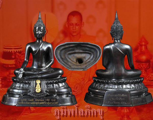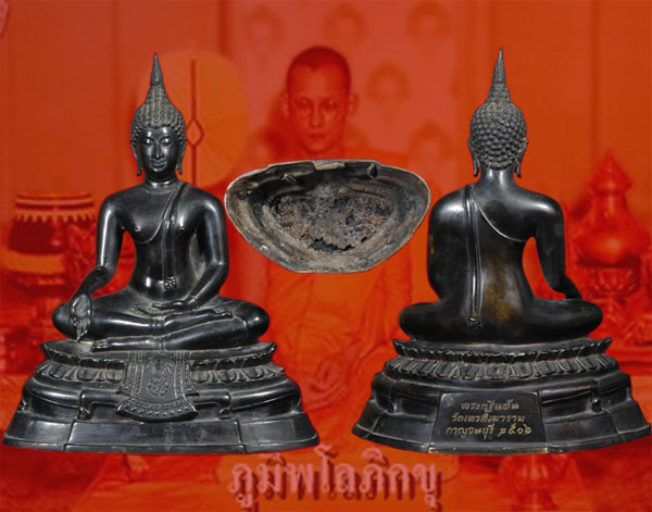 องค์แรก เป็นพระบูชาภปร.กฐินต้น วัดเทวสังฆาราม จ.กาญจนบุรี ปี๒๕๐๖ วัดเก่าของสมเด็จพระสังฆราช องค์ปัจจุบันก่อนที่ท่านจะไปอยู่ที่วัดบวรนิเวศ และพระบูชารุ่นนี้ถือว่าเป็นรุ่นแรกที่ในหลวงทรงเททอง องค์นี้ทองเหลืองรมดำหน้าตัก ๕ นิ้ว เบาๆๆครับ ๙ นิ้วเอื้อมไม่ถึงจริงทั้งราคาและความหายากครับ (ปลอมเยอะมากครับ)