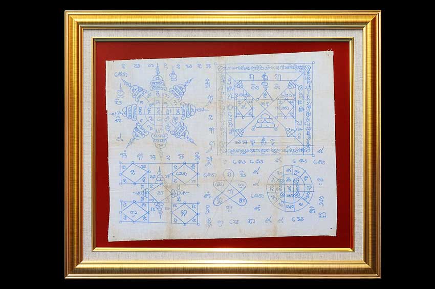 ผ้ายันต์ พัดโบกรุ่นแรกเขียนมือ เขียนด้วยหมึกน้ำเงิน ถือได้ว่าเป็บแบบฉบับ original เลยก็ว่าได้ครับ อักขระ ลายมือแบบนี้ ตัวจริงเสียจริง ทั้งหมดที่เรียกได้ว่าครบทุกด้านเลยก็ว่าได้ ประกอบไปด้วย ยันต์ เมตตามหานิยม มหาเสน่ห์ ค้าขาย มหาอุต คงกระพัน หนุนดวง เพราะเรียกได้ว่าทุกอักขระภาษายันต์นั้น มาอยู่ในพื้นนี้หมดเลย |