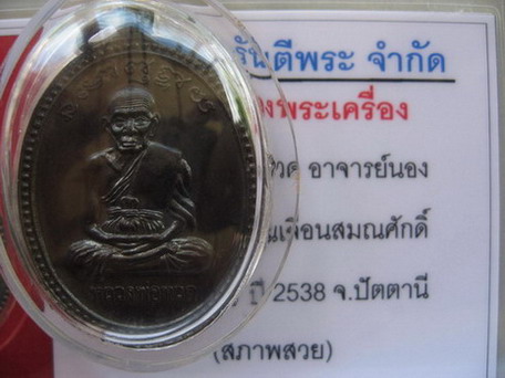 เหรียญหลวงปู่ทวด รุ่นเลื่อนสมณศักดิ์อาจารย์นอง วัดทรายขาว อ.นองท่านเป็นสหธรรมิกกับอาจารย์ทิม วัดช้างให้ ท่านมีส่วนช่วยเหลืออ.ทิมมาตั้งแต่สร้างพระหลวงปู่ทวดพิมพ์แรกๆของวัดช้างให้ครับ แต่ท่านเพิ่งมาสร้างวัตถุมงคลของท่านในภายหลังครับ เหรียญนี้ผมว่าออกแบบได้สวยงามเป็นเอกลักษณ์ของเหรียญหลวงปู่ทวดอีกเหรียญเลยครับ พอดีมีอยุ่หลายเหรียญเลยลองเอามาให้สมาชิกได้ชมกันบ้าง ยังถ่ายรูปไม่เก่งนะครับ เลยขออนุญาตใช้ภาพเจ้าของท่านเดิมก่อนขอบคุณมากครับ ติชมกันได้เลยครับ |