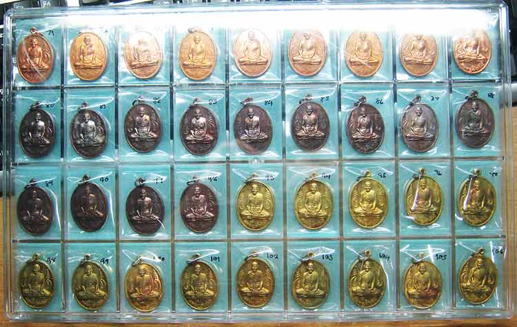 ของปี ๒๕๔๐ ด้านหน้าองค์หลวงปู่นั่งประทับตรงกลาง ข้างซ้ายขวาเป็นพญานาคคู่ ด้านหลังบรรจุยันต์มหาเศรษฐี