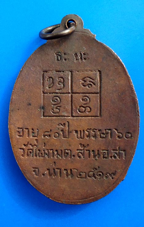 เหรียญรุ่นแรก : สบทบทุนสร้าวอุโบสถ คณะศิษย์ขออนุยาตสร้างเหรียญรุ่นแรกไว้เป็นที่ระลึกและบูชาประจวบกับขณะนั้นทางวัดกำลังก่อสร้างอุโบสถ จึงเป็นการร่วมสมทบทุนให้การก่อสร้างสำเร็จลุล่วง เหรียญรุ่นแรกมีพิธีปลุกเสกเมื่อ16ตุลาคม 2519 เวลา15.09 น.มีพระสาราธิคุณ เจ้าคณะอำเภอสา วัดบุญยืน เป็นประธานฯ จำนวนสร้างดังนี้