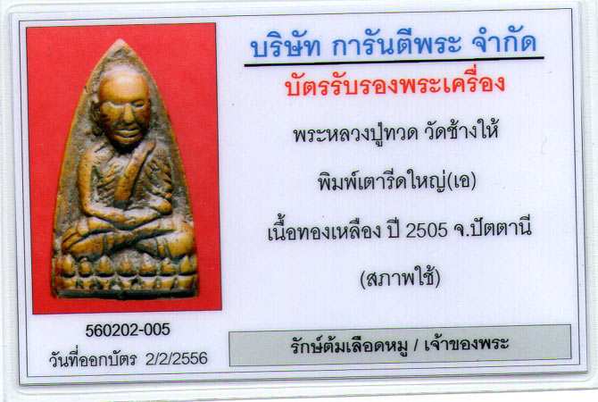 เป็นพระหลวงปู่ทวด วัดช้างให้ ปัตตานี หลังเตารีด พิมพ์ใหญ่เอ เนื้อเหลือง ปี 2505