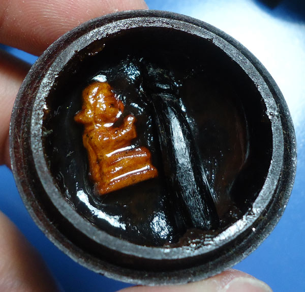 ซื้อพระ แล้วพี่เค้าให้หยิบแถมมา 1 ชิ้น เลยเอาชิ้นนี้มาครับ ไม่ทราบของที่ไหน แต่ตอนเอามาเห็น ว่าดูเก่าดี มีนางกวักกับไม้จมอยู่ด้านใน(ตอนเอามาปลัดจมเกือบมิดครับ) เลยงัดไม้ออกมาดู ถึงรู้ว่าเป็นตะกรุด สวยดี มีจารครับ