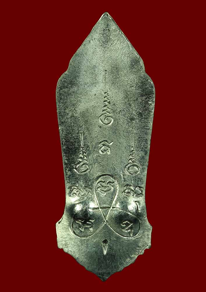 องค์นี้เนื้อตะกั่วแต่ผิวสวยดั่งเนื้อเงิน จมูกโดนไปนิดเดียว โดยทั่วไปรุ่นนี้จมูกจะโดนเยอะ เนื่องจากตะกั่วเป็นโลหะที่มีความอ่อนกว่าโลหะชนิดอื่น ส่วนผิวแบบนี้บอกคำเดียวว่าแบบหาชมได้ยาก ยิ่งเป็นโค๊ดวัดป่าประดู่ (ระยอง) 2 โค๊ด (มีเข็มอีกต่างหาก) ยิ่งหาชมยากครับ |