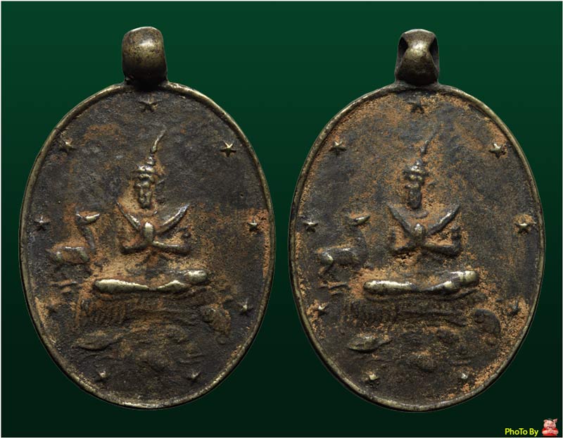 โดยการสร้างได้จินตนาการให้เหรียญมีรูปพระสังข์ทองนั่งร่ายพระเวทอยู่ในบรรยากาศท้องฟ้ากำลังปั่นป่วนอึมครึ้ม มีเมฆมาบดบัง มีดวงดาวกระจายเต็มท้องฟ้า บรรยากาศขมุกขมัว และบังเกิดอิทธิฤทธิ์แห่งพระเวท นะจังงัง นะมหาละลวย เกิดความงง งวย แก่สรรพสัตว์ที่ถึงชะตาขาดให้พากันวิ่งพากันว่ายน้ำให้พากันมาชุมนุม ณ สถานที่พระสังข์ทองภาวนาพระเวทอยู่ เพื่อมาเป็นอาหาร ณ บัดนั้น