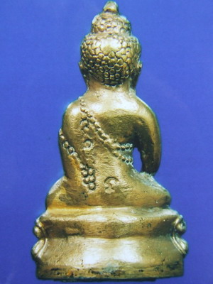 เป็นพระกริ่งเนื้อกะหลั่ยทอง ก้นอุดผงซึ่งเคยนำมาลงแล้วครั้งหนึ่ง แต่ภาพไม่สวย ด้านหลังตอกโค๊ดตัว"นะแอล" ซึ่งเป็นโค๊ดตัวแรกที่ใช้ตอก แต่ทางผู้จัดสร้างเห็นว่าไม่สวย จึงได้ทำโค๊ด "นะในเม็ดงา"ตอกลงไปแทน ส่วนโค๊ดตัว "นะแอล" ได้นำไปตอกเหรียญ ฯของหลวงปู่ในเวลาต่อมา สำหรับองค์ที่ตอกโค๊ดตัว"นะแอล" ซึ่งมีไม่มากได้แจกจ่ายให้กับผู้ใกล้ชิด เพื่อนสนิท มีทั้งนำไปทำกะหลั่ยทอง กะหลั่ยเงิน หรือเป็นเนื้อนวะเดิม ๆ และต่อมาเมื่อผู้ที่ได้รับไปแล้วทราบมาว่าทางอาจารย์ชินพร สุขสถิตย์ได้นำกริ่งที่ชำรุดมาอุดผงพรายกุมาร และอาราธนาหลวงปู่ให้ปลุกเสก พวกเขาเหล่านั้นก็ได้นำมาให้อาจารย์อุดผงฯและเข้าพิธีพร้อมกัน(ข้อมูลของอาจารย์ชินพร ฯ) |