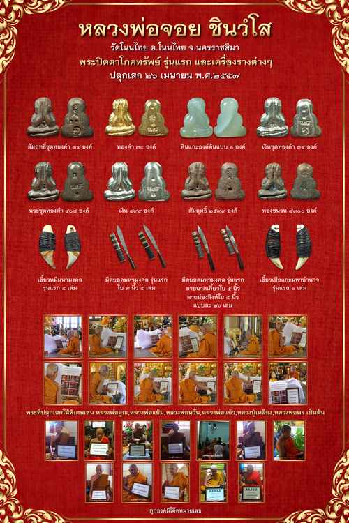 วัตถุมงคลปี 2557 ของพระครูอนุวัตรชินวงศ์ หลวงพ่อจอย ชินวํโส วัดโนนไทย อ.โนนไทย จ.นครราชสีมา ศิษย์เอกหลวงพ่อคูณวัดบ้านไร่