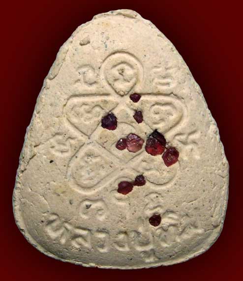 ปิดตาที่ว่านี้คือปิดตาฝังทับทิม สร้างในปี พ.ศ. 2517 จำนวน 9,000 องค์ ด้านหลังเป็นยันต์ห้า มีด้วยกัน 4 สี คือ ขาว น้ำตาล เทา และดำ เนื้อพระประกอบด้วย ผงอิทธิเจ ผงตรีนิสิงเห ผงปถมัง พร้อมทั้งผงพรายกุมารของ ลป.ทิมด้วย พระพิมพ์นี้จะมีเม็ดทับทิมที่ ลป.ได้ปลุกเสกทิ้งไว้ฝังที่ด้านหน้าหรือด้านหลังของทุกองค์ และในจำนวนนี้มีประมาณ 100 องค์ที่ผู้สร้างได้เอาปรกใบมะขามของ ลป.แหวน วัดดอยแม่ปั๋ง ซึ่งพระอาจารย์ทองเจือแห่งวัดปากน้ำ ภาษีเจริญ เป็นผู้สร้างถวาย ลป.แหวนกดใส่ไว้ที่ด้านหลังเพื่อเอาไว้ใช้กันในหมู่ลูกศิษย์ พุทธคุณดีทางโชลาภ เมตตามหานิยม |
