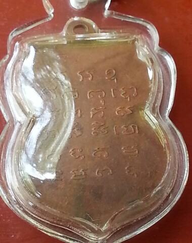 ด้านหลังเหรียญ เป็นยันต์อุ 23 อักขระ ทั้งนี้ เหรียญรุ่นแรก ด้านหลังแบ่งออกเป็น 2 บล็อก คือ บล็อกหลังเรียบและบล็อกขี้กลาก