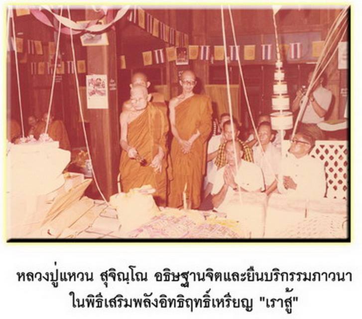 ขณะนั้น กำลังมีการปะทะต่อสู้กันทางชายแดนไทยด้านอรัญประเทศ จังหวัดปราจีนบุรี นักข่าวและทหารที่ได้รับเหรียญเราสู้ไปเวลานั้น ได้ต่อสู้ผจญภัยในสนามรบอย่างโชกโชนตลอดคืน และปลอดภัยรอดตายมาไดุ้ทุกคน เพราะมีเหรียญเราสู้ประจำตัวอยู่ทุกคน จึงทำให้เหรียญเราสู้โด่งดังไปทั่วทุกหนทุกแห่ง มีประชาชนทุกเพศทุกวัยอยากได้ พากันหลั่งไหลมาขอที่่วัดสัมพันธวงศ์บ้าง ที่วัดดอยแม่ปั๋งบ้าง จนเหรียญไม่พอแจกให้แก่ผู้ต้องการอยากได้