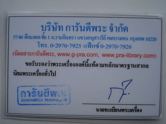 ......รับประกันความแท้โดย การันตีพระ.......