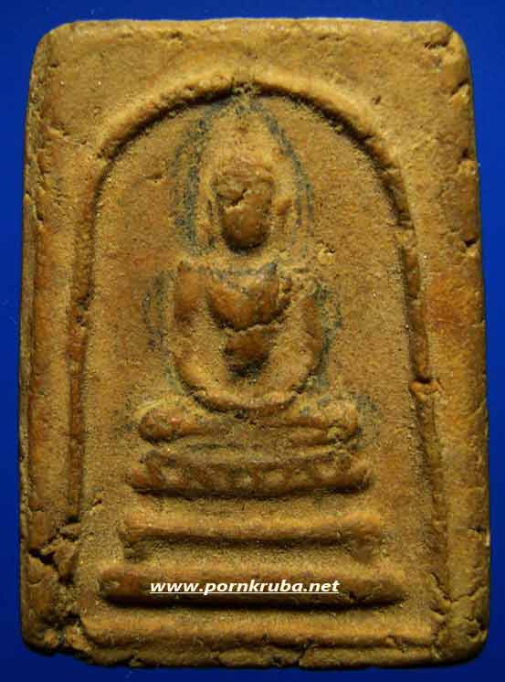 ตามประวัติบันทึกไว้ว่าท่านจัดสร้างราวช่วงปี 2494 เนื้อผงพุทธคุณ และของมงคลมากมายเช่น เกสรดอกไม้ แล้วจะนำไปจัดเก็บในกล่องแล้วนำไปอธิฐานจิตในกุฎิต่อไป องค์นี้เนื้อจัดเหลืองคล้ายขมิ้น จึงเรียกพระแบบนี้ว่า "เนื้อขมิ้น" และมีจารตั้งองค์พระ เนื้อจะคล้ายขนมตุ๊บตั๊บ สำหรับผมแล้วองค์นี้ผมว่า "สวยเลือกได้" ครับ |