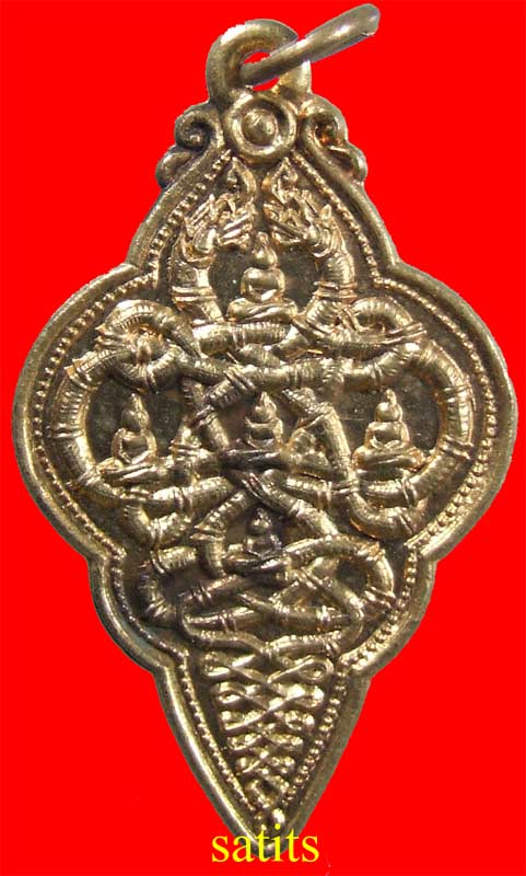 เริ่มต้นด้วยเหรียญนาคเกี้ยว ออกปี 2500 กะไหล่ทอง (ถ่ายกะไหล่ทองยากจังเลย) ถือเป็นเหรียญที่พุทธคุณสูง แต่ราคายังไม่แพงเพราะว่าจำนวนการสร้างน้อย เห็นบอกว่า รุ่นนี้ที่แจกกรรมการเป็นแบบบุด้วยทองคำครับ แต่หายากมาก เอาเป็นว่าชมกะไหล่ทองไปก่อนแล้วกันครับ |