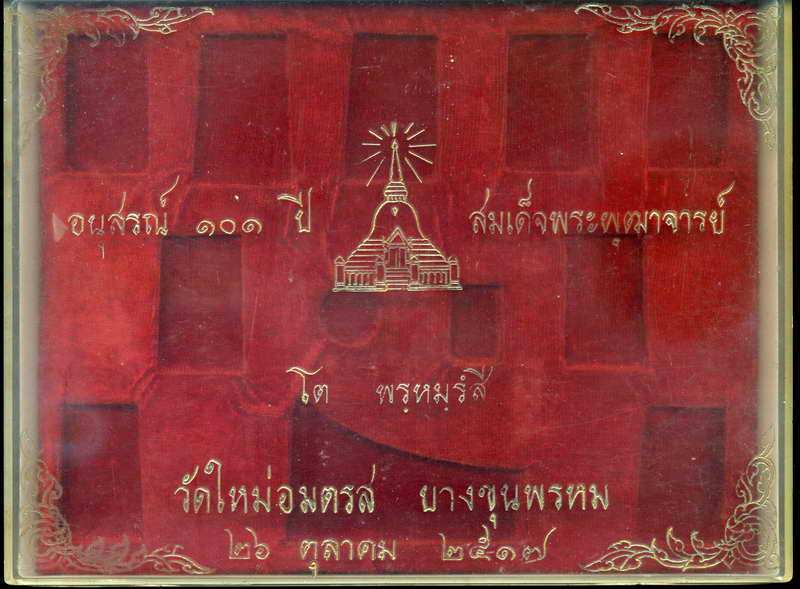 พระบางขุนพรหม ปี 2517 สร้างจำนวนประมาณ 40,000 องค์ เป็นพระที่มีส่วนผสมของพระสมเด็จบางขุนพรหมรุ่นเปิดกรุปี 2500 และ ผงที่แตกหักจากการสร้างปี 2509 อยู่มาก พิธีกรรมการปลุกเสกยิ่งใหญ่มากๆ พระเกจิดังๆ จำนวน 37 รูป ร่วมปลุกเสก ปัจจุบันราคายังน่าสะสมมากๆ เพราะยังไปได้อีกไกลครับ |