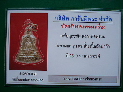 พระชุดหลวงพ่อพรหม ได้รับความนิยมมาก เพราะว่ามีประสบการณ์ด้านแคล้วคลาดและคงกระพันสูง อาทิตย์ก่อนแว๊ปไปเจียงใหม่ พรรคพวกแบ่งเหรียญระฆังหลวงพ่อพรหม รุ่น ส.ช ให้ 2 เหรียญ เป็นพิมพ์ ส.ช.สั้นและยาว อย่างละเหรียญ พระหลวงพ่อพรหมค่อนข้างจะหายากแล้วครับ(ที่เชียงใหม่)  |
