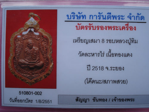 วันนี้ได้รับพระที่ชนะการประมูล และขอใช้สิทธิ์ให้ผู้ตั้งประมูล คือคุณ...conun (สายตรงหลวงพ่อพรหม) ส่งพระองค์นี้ไปตรวจสอบและออกบัตรรับรองพระเครื่อง ผลคือ.....พระแท้ สามารถออกบัตรรับรองได้ และ (สภาพสวย)ครับ  |