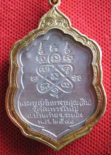 เป็นเสมาทองคำ หลวงพ่อสินวัดระหารใหญ่ ออกปี 40 มีทั้งหมด 15 เหรียญ ตอกหมายเลข 13 เหรียญอีก 2 เหรียญเป็นเหรียญลองพิมพ์ซึ่งครั้งแรกที่ทำลูกศิษย์หลวงพ่อที่ขายทองอยู่กรุงเทพฯได้บริจาคทองสวิสให้ไปลองปั้มมาดู 2 เหรียญแต่ปรากฎว่าทองสวิสที่ปั้มมานั้นเนื้อมันอ่อนเกินไป หลวงจึงสั่งให้ใช้ทองธรรมดาที่ขายกันอยู่ทั่วไปทำแทนทองสวิส