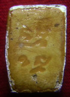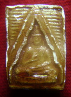 พระอยู่ในกรอบพลาสติดเก่ามาก่อนครับ เพิ่งจะเผากรอบออก ตอนได้มาไม่คิดว่าจะดี เพราะกรอบมัวมองพระข้างในไม่เห็นแค่รู้ว่าเลี่ยมผ่านการใช้เก่ามาก่อน แต่พอจะเห็นแชล็คว่าเก่า พอลนไฟออกทำให้เนื้อพระบริเวณขอบพระด้านหน้า และขอบด้านหลังเปื่อยกร่อนหลุดติดกับกรอบพลาสติกไปเลยครับ ด้านข้างโดนความร้อนจากไฟลนจนเป็นฟองอากาศนิดหน่อย ตอนเอาออกมาทีแรกดูยันต์ว่ายันต์ผิด แต่พอพลิกกลับดูสรุปว่าองค์นี้ปั๊มยันกลับหัวครับ เขามาดูแล้วติชมกันบ้างนะครับ.  |